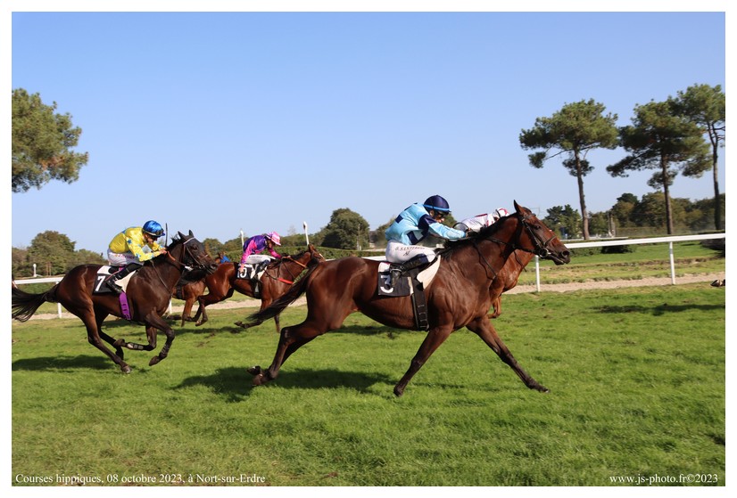 Courses hippiques, 08 octobre 2023 Nort-sur-Erdre page 2 COURSE N°3 – PRIX FB CONSTRUCTION (suite) COURSE N°4 – PRIX CHEVAL LIBERTE (PRIX GILLES TARTOUE) COURSE N°5 – PRIX BERNARD AGRI SERVICE – CHALLENGE FRANCE SIRE COURSE N°6 – PRIX PEPINIERES DU VAL D’ERDRE (PRIX JM PIZZAS) Les autres photos : page 1 et page 3